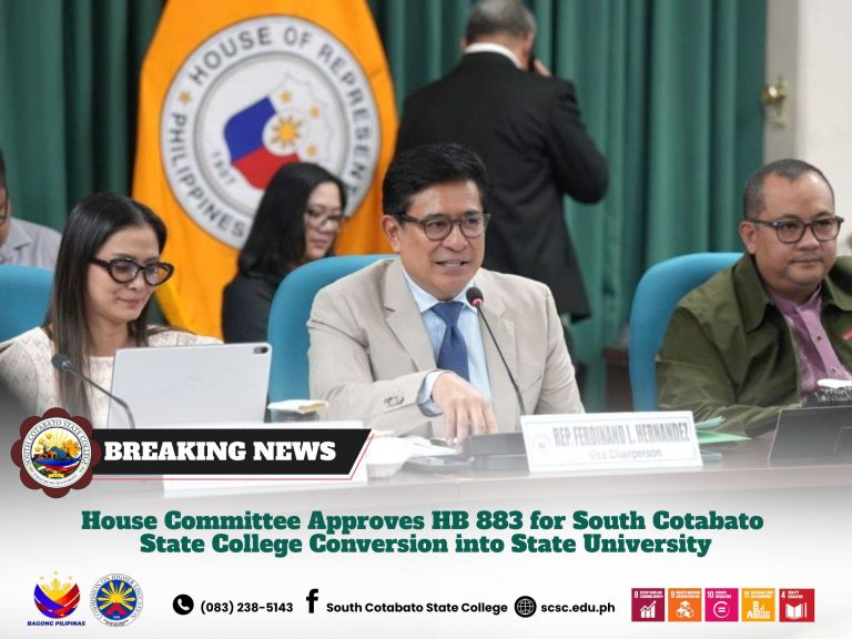 Metro Manila, Philippines – Through the initiative of House Senior Deputy Speaker, Representative Atty. Ferdinand L. Hernandez, the House Committee on Higher and Technical Education has approved House Bill 883, which seeks to convert South Cotabato State College into aโ€ฆ